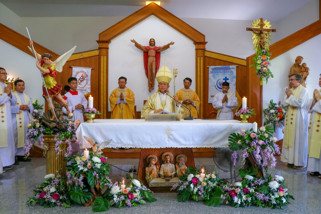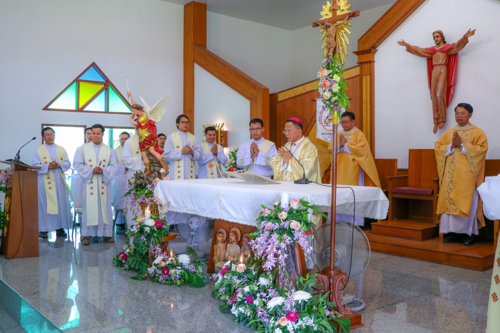 วันเสาร์ที่ 29 กันยายน 2018 เวลา 10.30 น. พระสังฆราชยอแซฟ ลือชัย ธาตุวิสัย ประมุขสังฆมณฑลอุดรธานี ประธานในพิธีบูชาขอบพระคุณโอกาสฉลองวัดอัครเทวดามีคาแอล จ.หนองบัวลำภู…พระสงฆ์ นักบวช ซิสเตอร์ และพี่น้องสัตบุรุษทั้งใกล้และไกลมาร่วมเป็นกำลังใจและแบ่งปันความชื่นชมยินดีในโอกาสนี้เป็นจำนวนมาก
