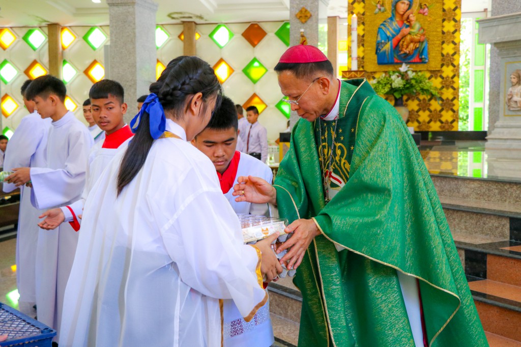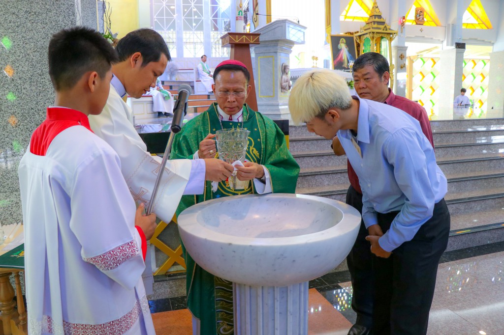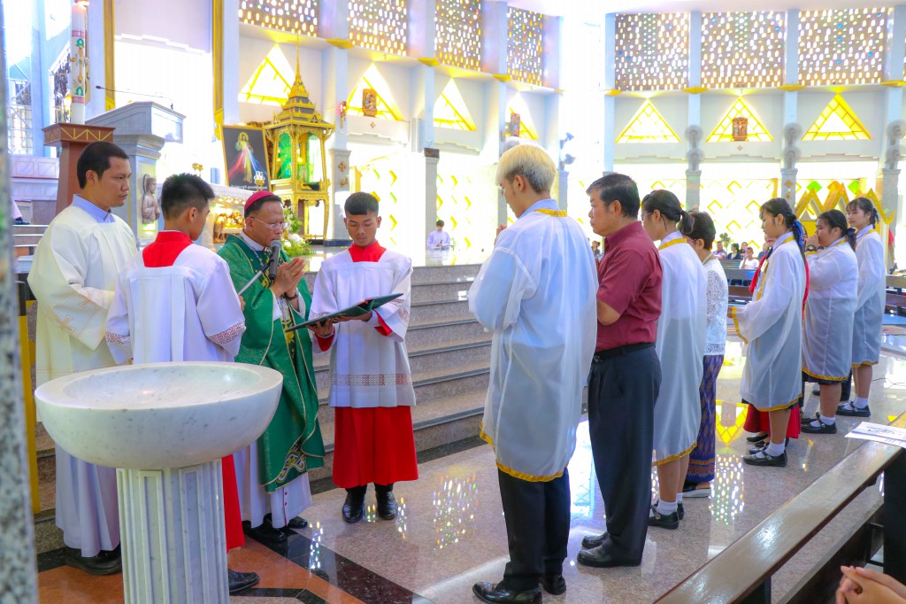 วันอาทิตย์ที่ 30 กันยายน ค.ศ.2018 อาทิตย์ที่ 26 เทศกาลธรรมดา เวลา 08.00 น. ณ อาสนวิหารพระมารดานิจจานุเคราะห์ อุดรธานี พิธีบูชาขอบพระคุณ โดย พระสังฆราชยอแซฟ ลือชัย ธาตุวิสัย ประมุขสังฆมณฑลอุดรธานี ร่วมกับคุณพ่อเปาโล สมนึก สุทธิ อุปสังฆราช, คุณพ่อเปโตร สุรินทร์ อยู่สุข อธิการบ้านเณรสันติราชา และคุณพ่อนิโคลัส สราวุธ สหายแก่นรองอธิการบ้านเณรฯ...โอกาสนี้ พระคุณเจ้าได้โปรดศีลล้างบาปแก่ผู้ใหญ่ จำนวน 5 คน ...การรับศีลล้างบาป ผ่านไปด้วยความสง่างาม สมเกียรติแก่การเกิดใหม่ในพระเจ้า ด้วยน้ำและพระจิต นำมาซึ่งความสุขแก่ผู้ที่ได้รับศีลล้างบาปเอง และสัตบุรุษในวัด ศีลล้างบาป เป็นจุดเริ่มต้นของการเข้ามาเป็นศริสตชน ซึ่งเปรียบเสมือนเป็นทางเข้าเพื่อมาพบเจอกับศีลศักดิ์สิทธิ์ประการอื่นๆ และได้รับพระพรจากพระเป็นเจ้าอย่างมากมาย โดยอาศัยความเชื่อและความศรัทธาที่มีอยู่ในตนเอง และวันนี้มีพระสงฆ์ นักบวช ซิสเตอร์ และพี่น้องสัตบุรุษ ได้ร่วมแสดงความยินดีในโอกาสนี้จำนวนมาก