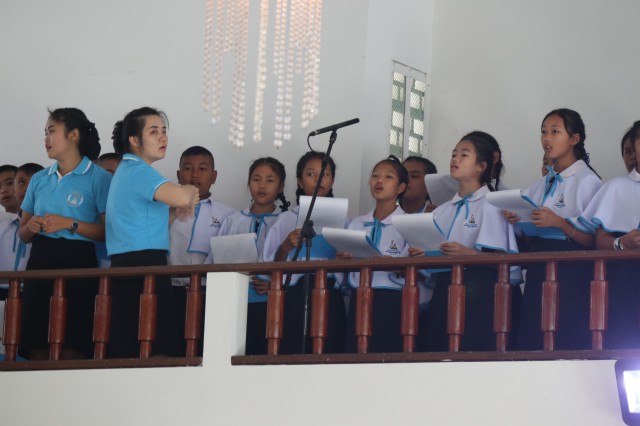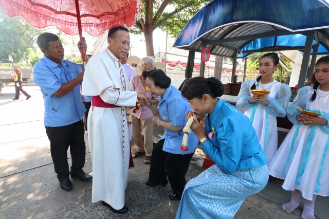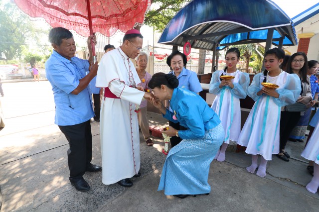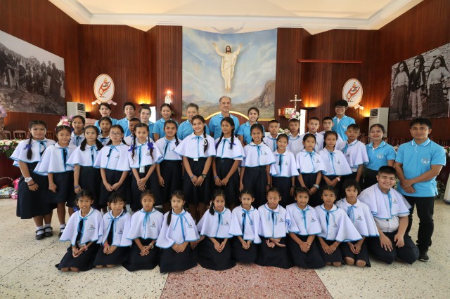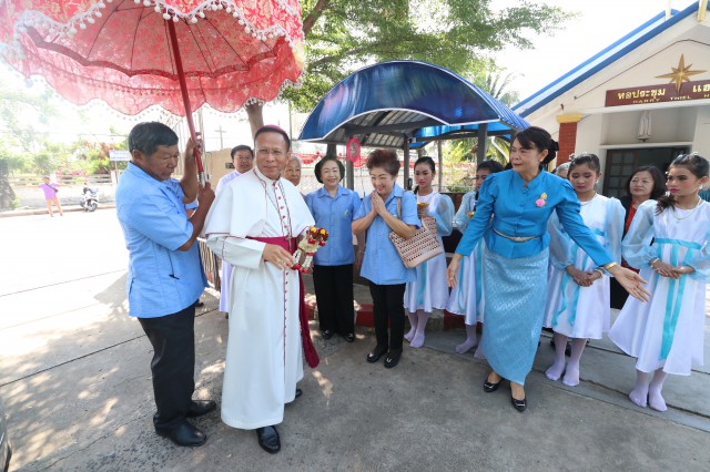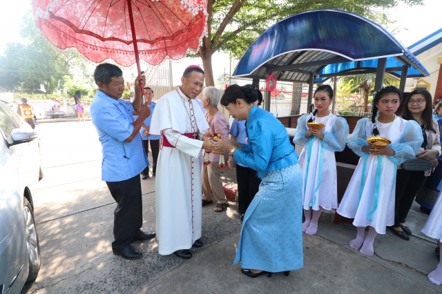 จากโรงเรียนมหาไถ่ศึกษา เมืองพลร่วมต้อนรับ พระสังฆราชยอแซฟ ลือชัย ธาตุวิสัย ประมุขสังฆมณฑลอุดรธานี