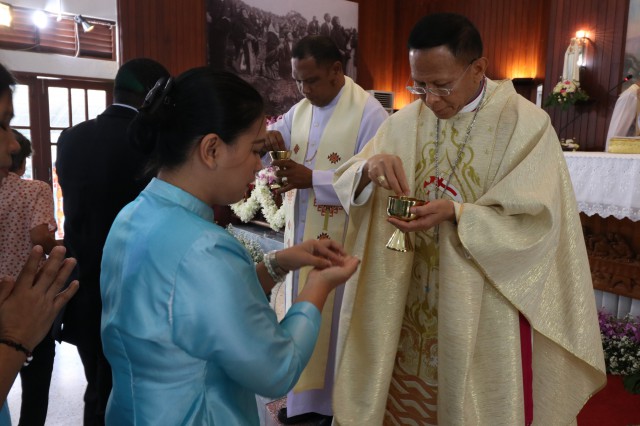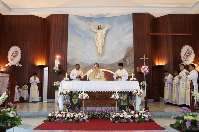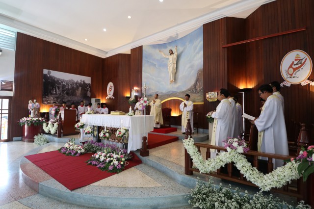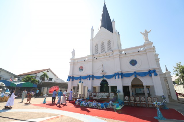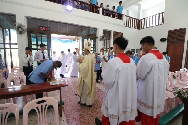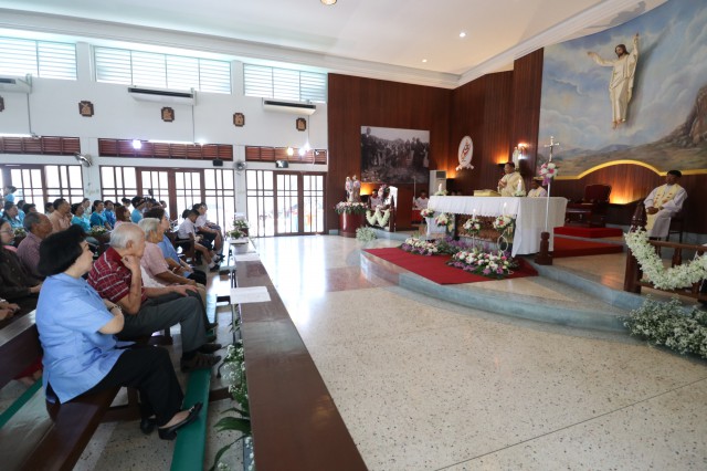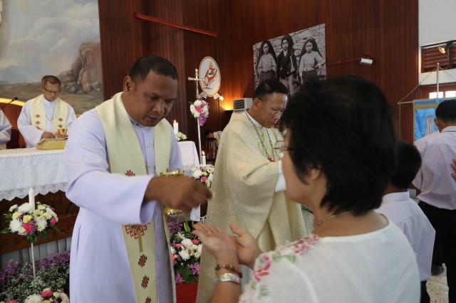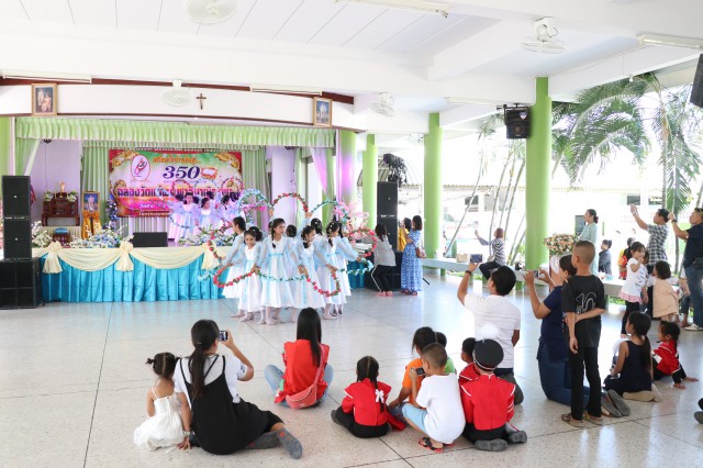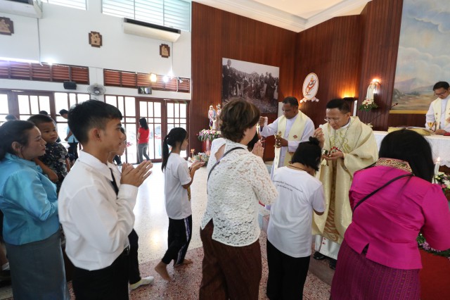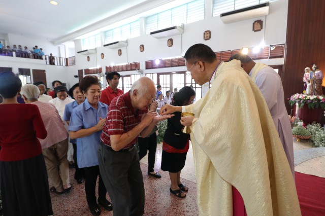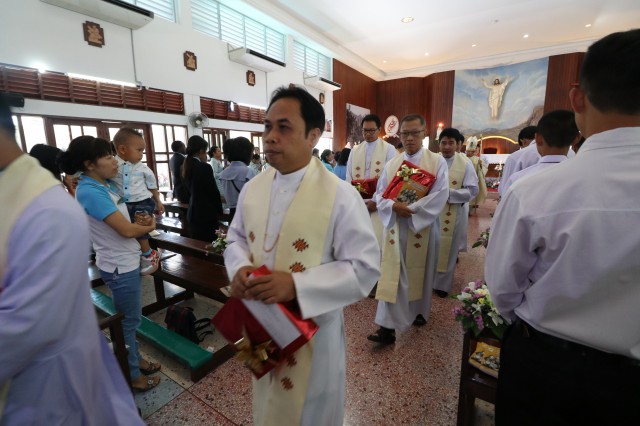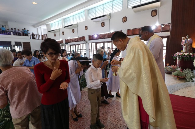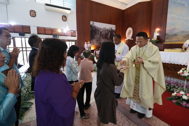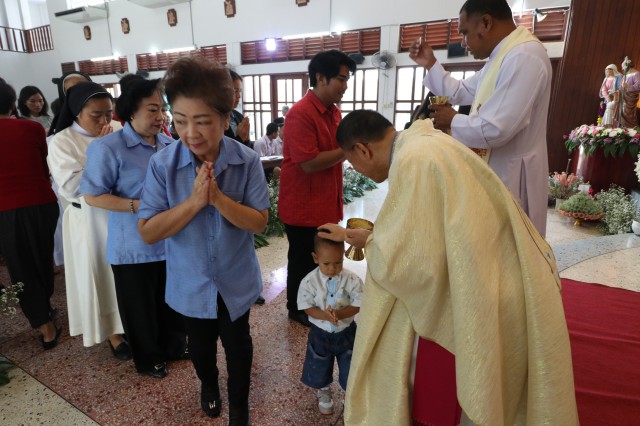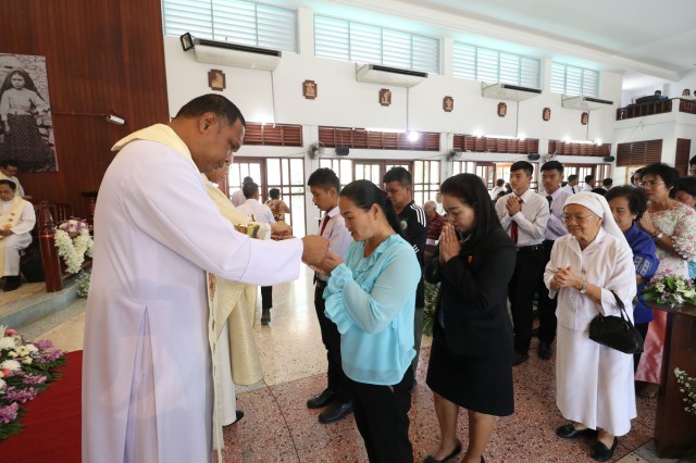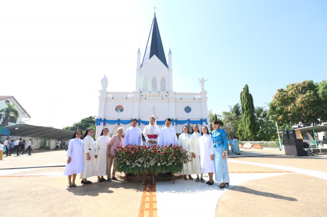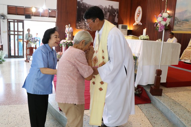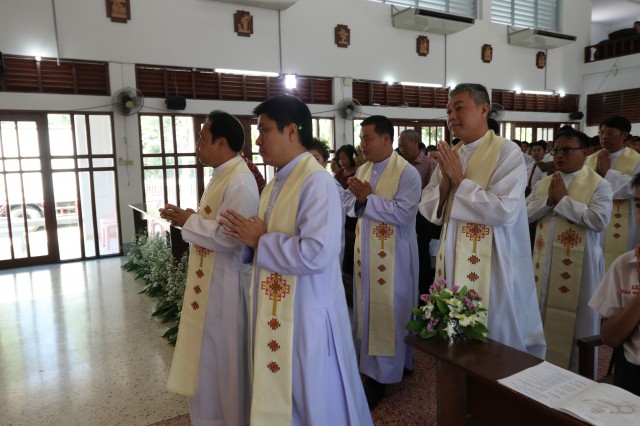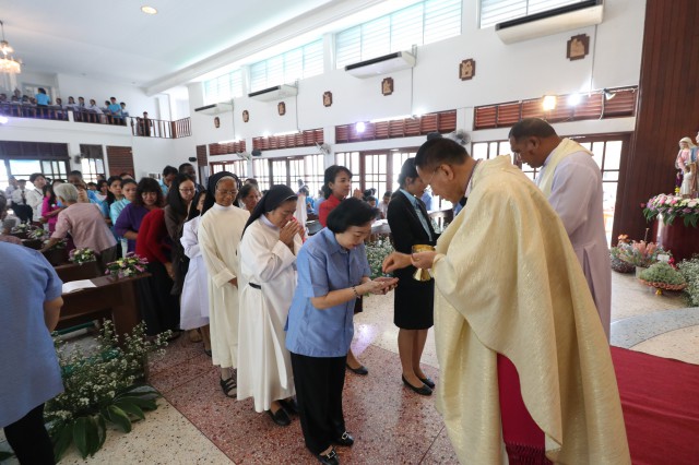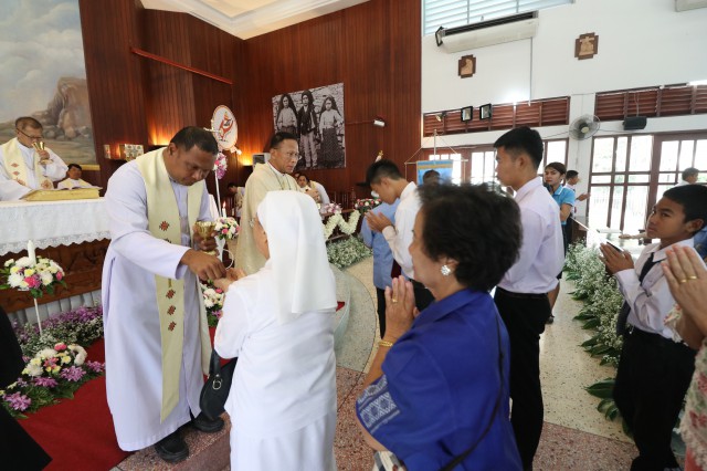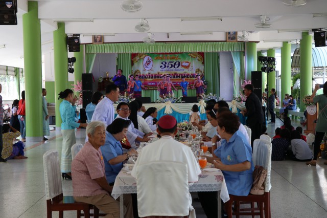 หลังพิธี พระสังฆราช พระสงฆ์ นักบวช คณะครู นักเรียนและพี่น้องสัตบุรุษรับประธานอาหารร่วมกัน