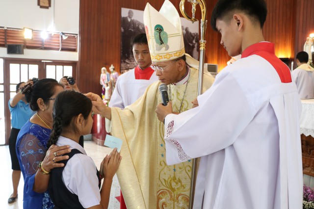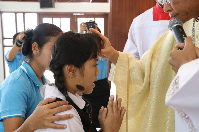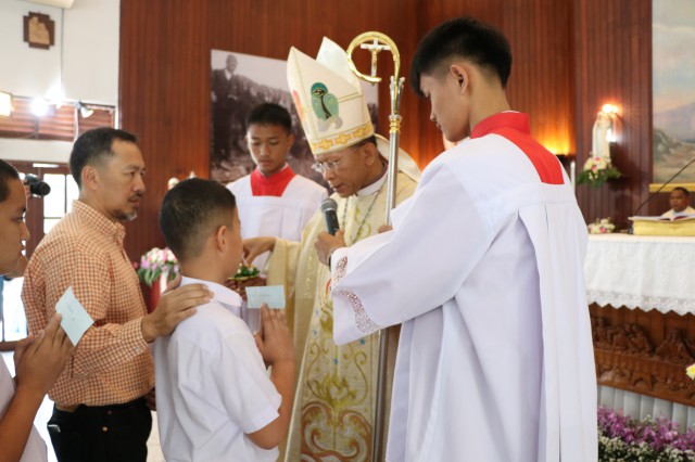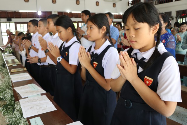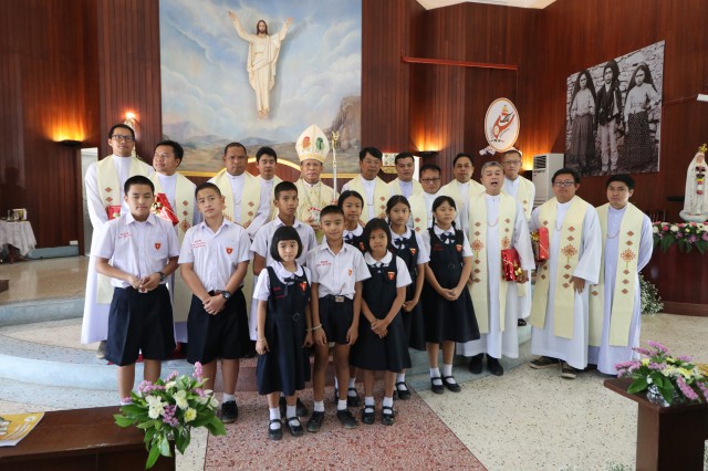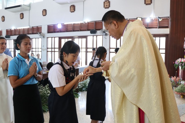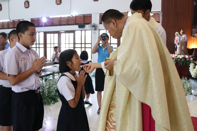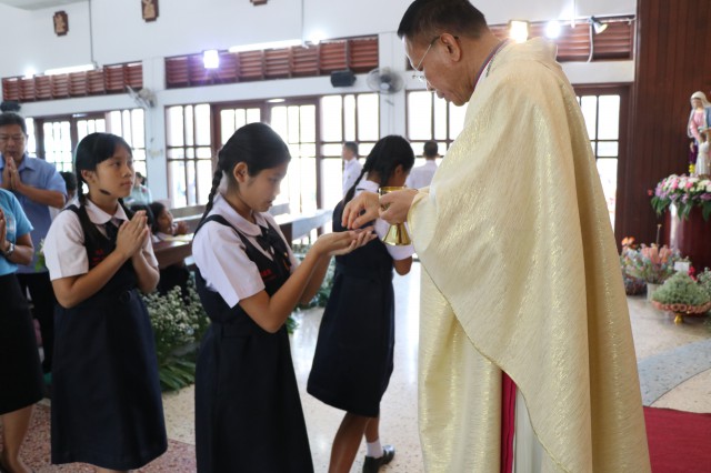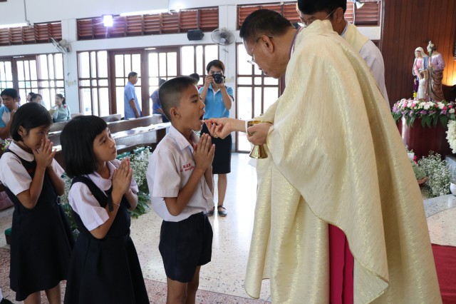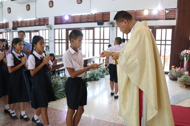รับศีลมหาสนิทและศีลอภัยบาปครั้งแรก จำนวน 3 คนและนักเรียนชาย-หญิง รับศีลกำลัง จำนวน 6 คน