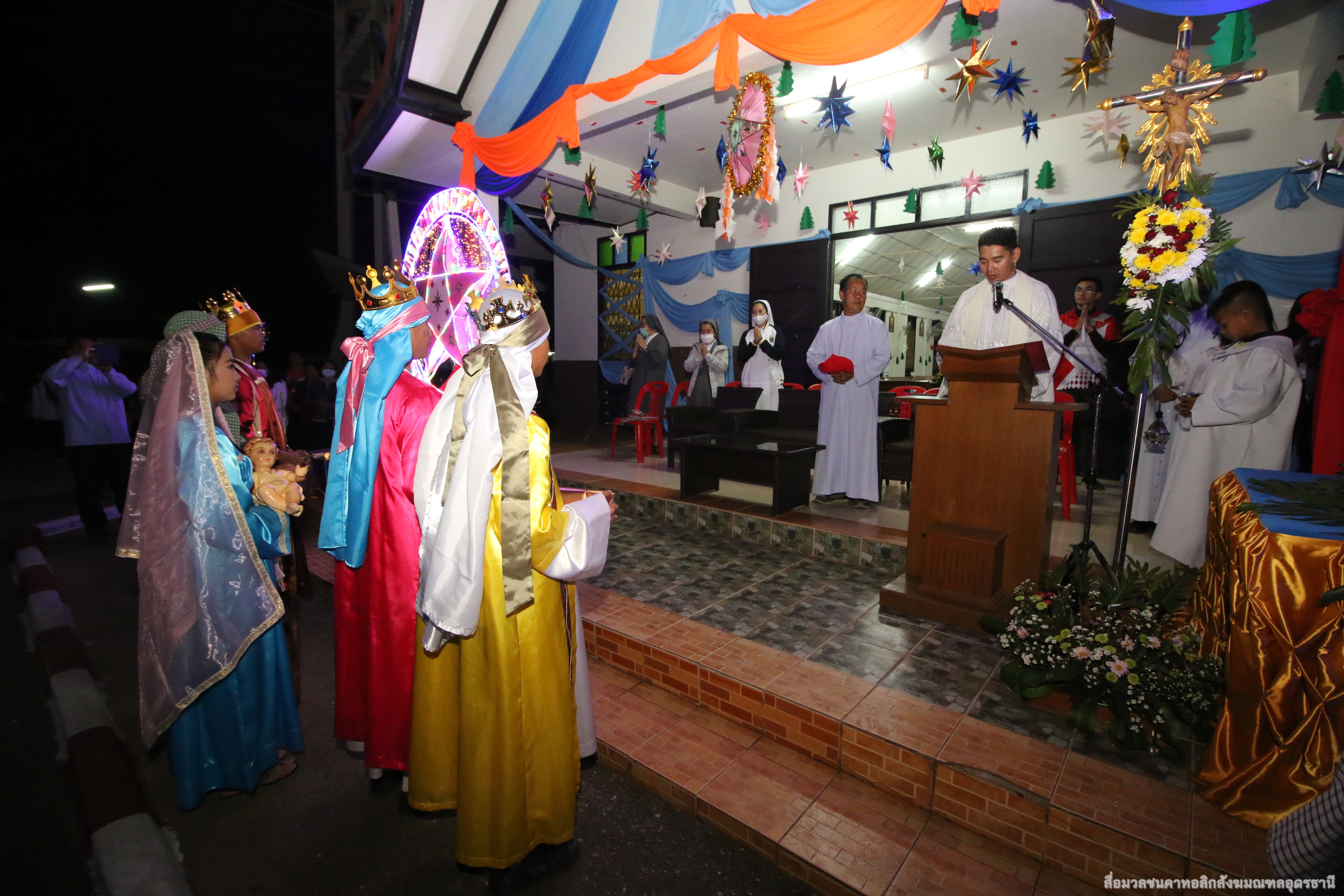 เวลา 18.00 น. คุณพ่อสมนึก สุทธิ ทำพิธีเสกขบวนดาว ก่อนคณะพระสงฆ์, บรรดานักบวช