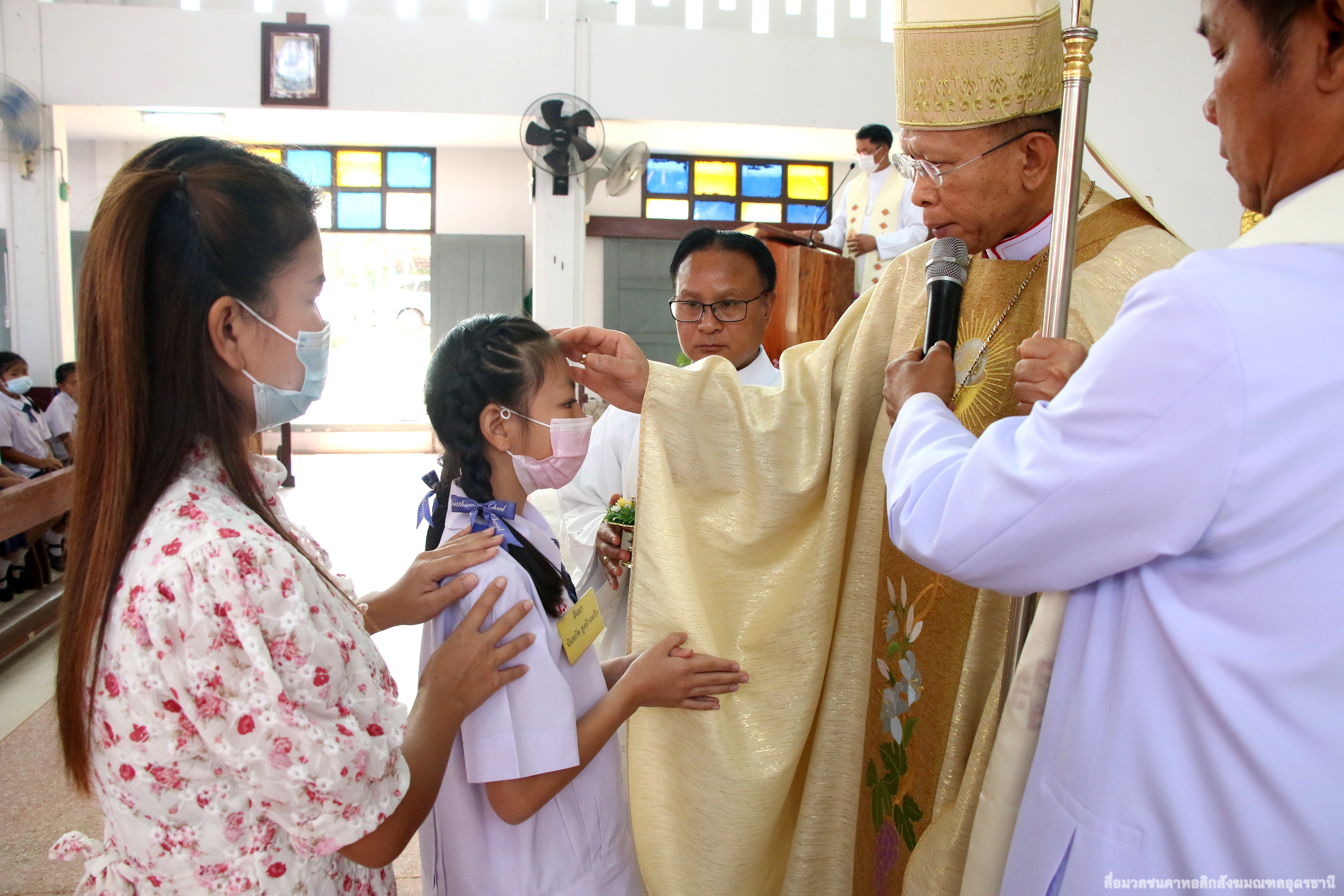 ในโอกาสนี้พระคุณเจ้าได้ทำพิธีโปรดศีลกำลัง